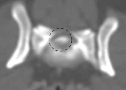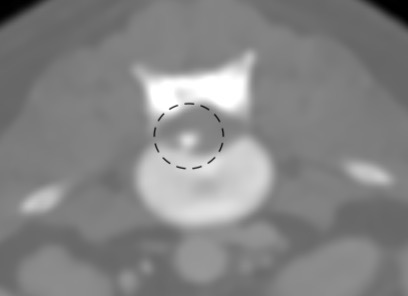 第4-5腰椎間にドーム状の不透過性構造が認められました。