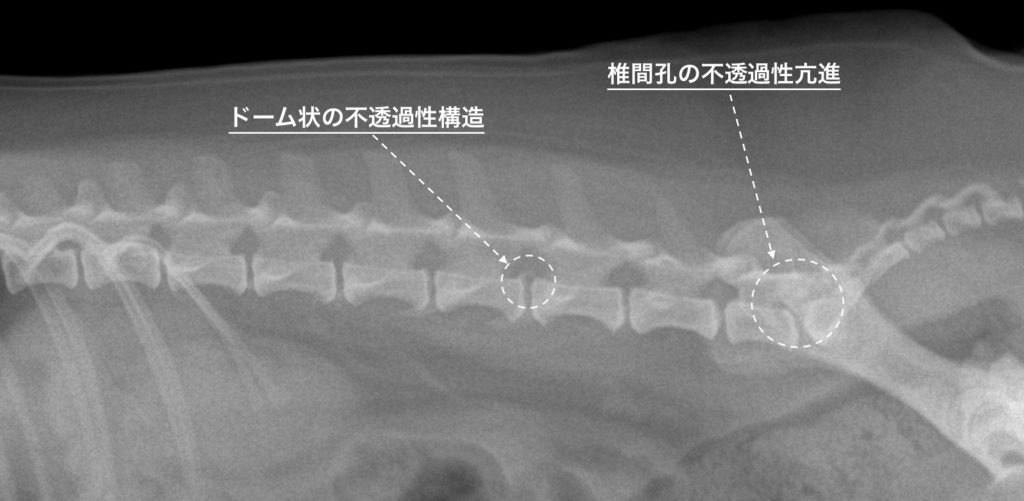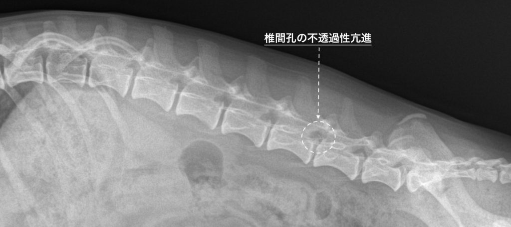 今回のように椎間板の突出部位の石灰化が強い場合にはレントゲン検査で確認することができますが、軽度の場合は捉えることが難しいケースがあります。